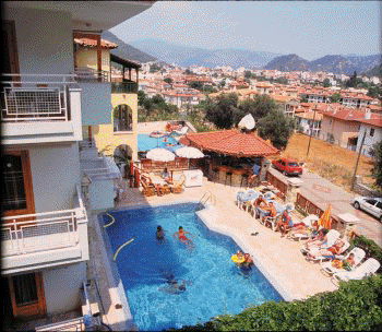 This family run apartment block is in a quiet position on the edge of Icmeler. You will find all the bars, shops and restaurants in the centre of Icmeler only 10 minutes walk. The beach is a 15-20 minute walk, if you don't want to take the dolmus, which runs every 15 minutes and stops outside the apartments.